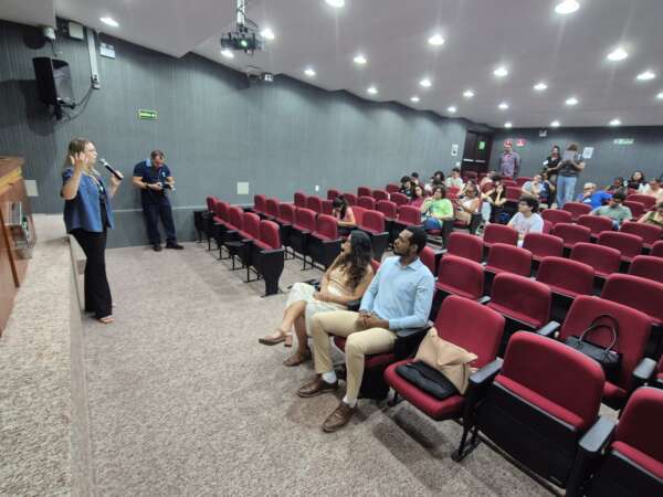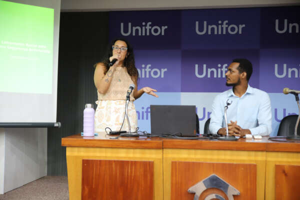 Numa inédita parceria entre a Superintendência de Pesquisa e Estratégia de Segurança Pública (Supesp) e a Universidade de Fortaleza (Unifor) foi realizada, nesta segunda-feira (1º/12), a Palestra “Formação e Letramento Racial para uma Segurança Antirracista”, no auditório A3, do bloco A da universidade, com a participação de cerca de 40 estudantes do curso de Jornalismo da Unifor, convidados e professores. A apresentação ainda contou com a presença e participação da orientadora de Célula de Grupos Vulneráveis, da Coordenadoria de Defesa Social (Codes), da Secretaria da Segurança Pública e Defesa Social (SSPDS/CE), Fabrine Bastos, e da policial militar Thaina, da Comando de Apoio e Prevenção às Comunidades (Copac).